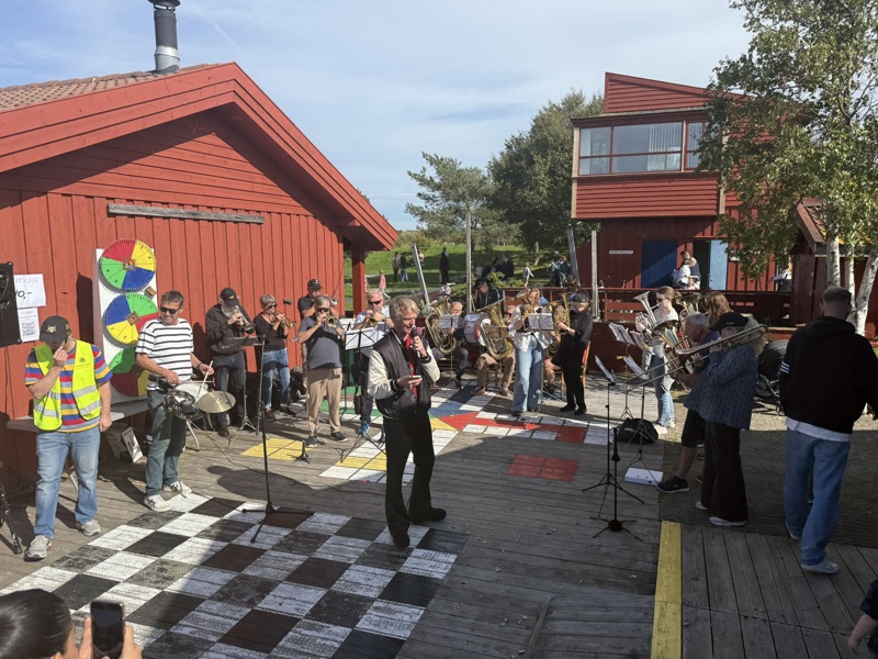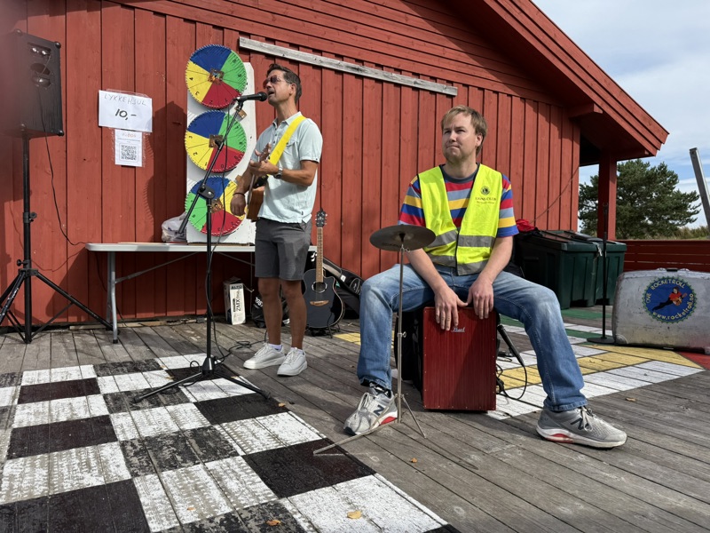 Henrik Akerø og Martin Kristensen, lokale trubadurer, underholder.
